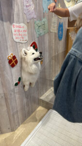 沢山のサモエドがいて、皆おやつに夢中でした笑