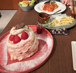 都内とは思えないくらい緑に囲まれたカフェで、パスタやポテト、ふるふるパンケーキをシェアして食べてきたのですが、どれも美味しくて幸せ時間を過ごすことができました。